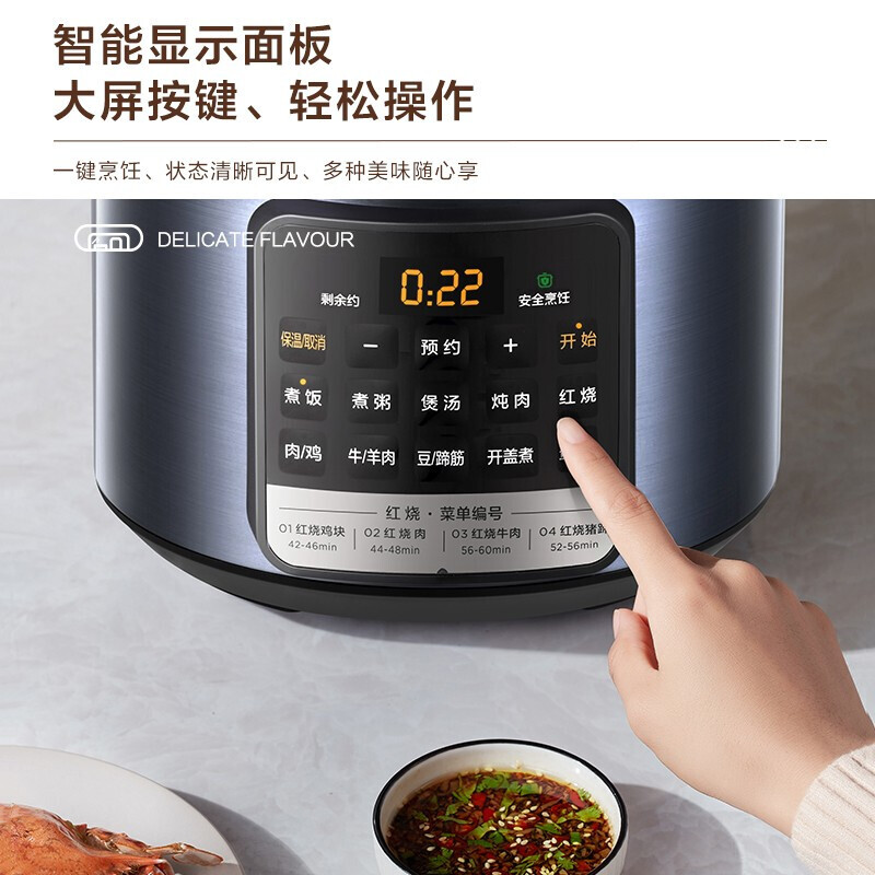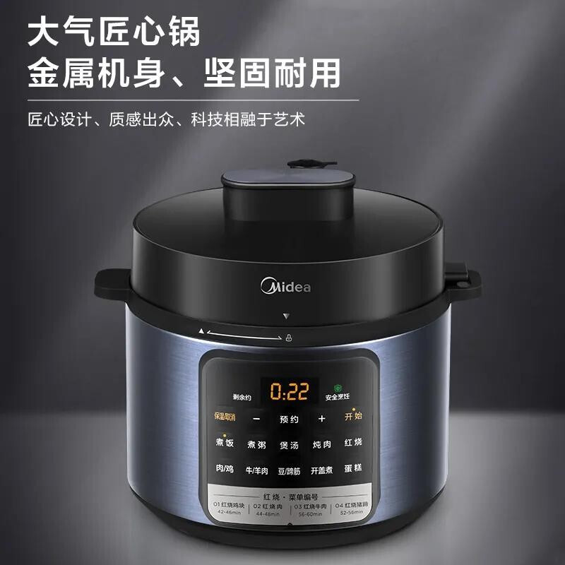 商品相册:美的(Midea)MY-AYL4011 电压力锅4升家用智能电高压锅全自动多功能预约煮饭煲汤锅3-4人黑晶内胆 金属外观第