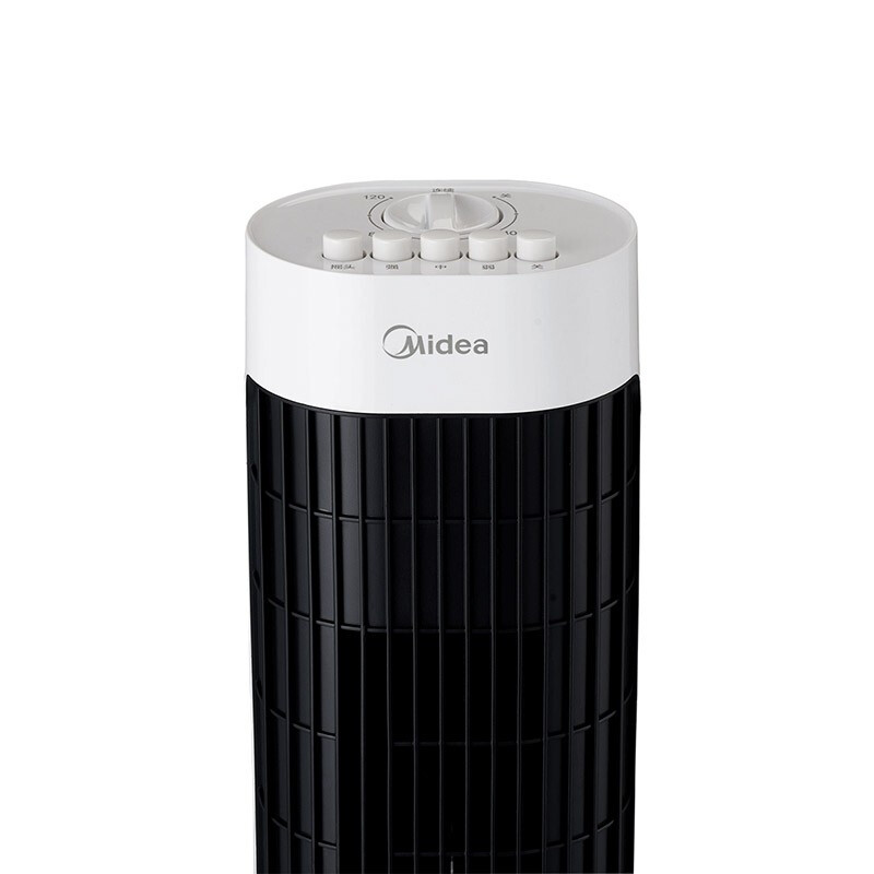商品相册:美的(Midea) FZA10WA 电风扇 大风量轻柔风感轻音噪广角送风3档风量定时占地小落地扇塔扇 白色第
