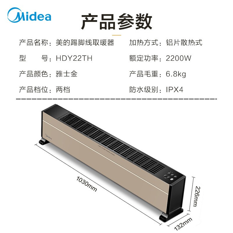 商品相册:美的(Midea)HDY22TH 踢脚线取暖器电暖器电暖气家用暖风机石墨烯取暖器浴室热风机【石墨烯黑科技】WiFi款第