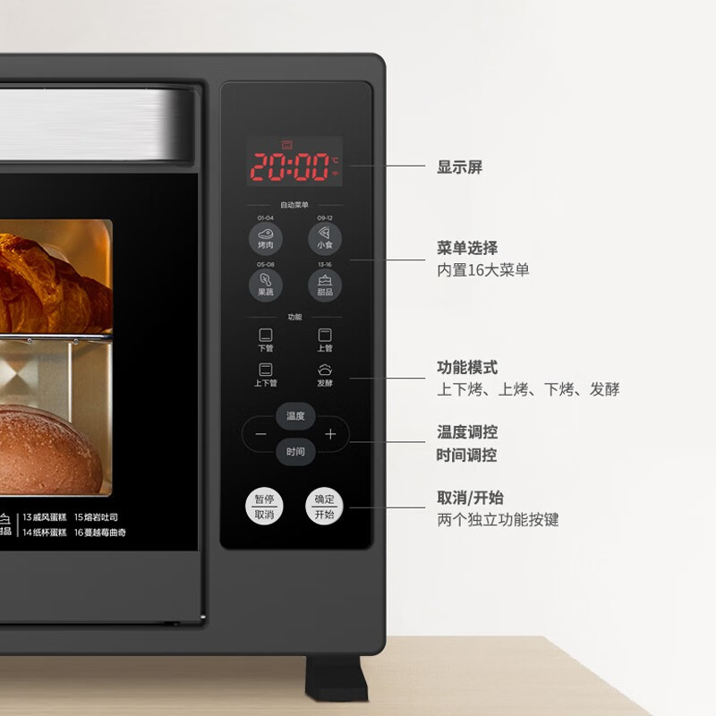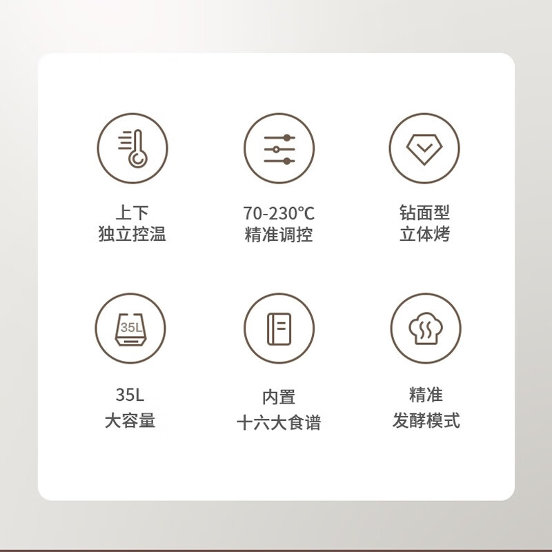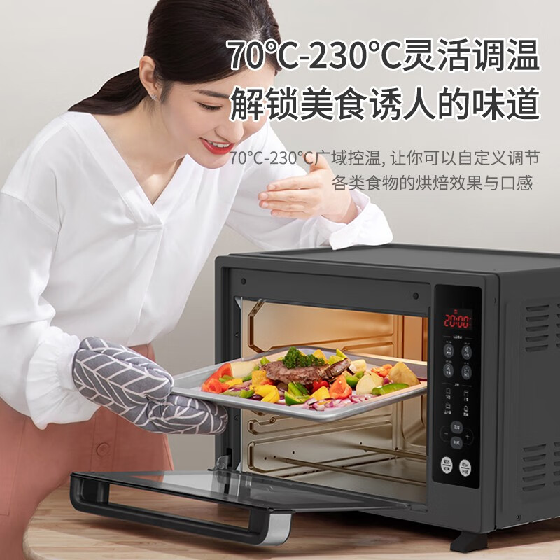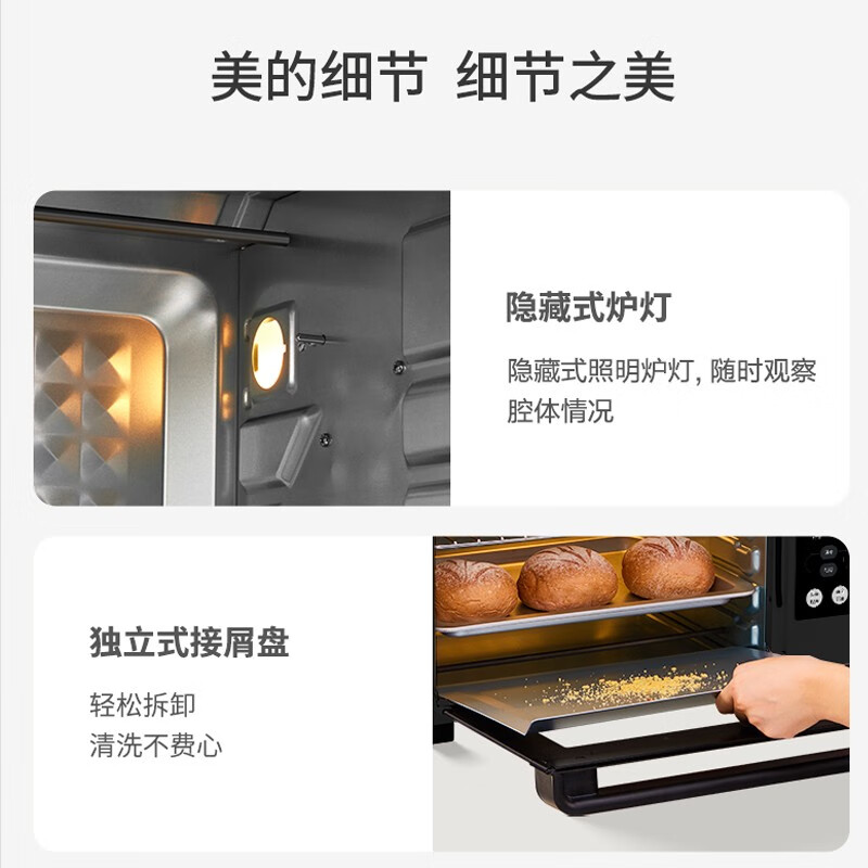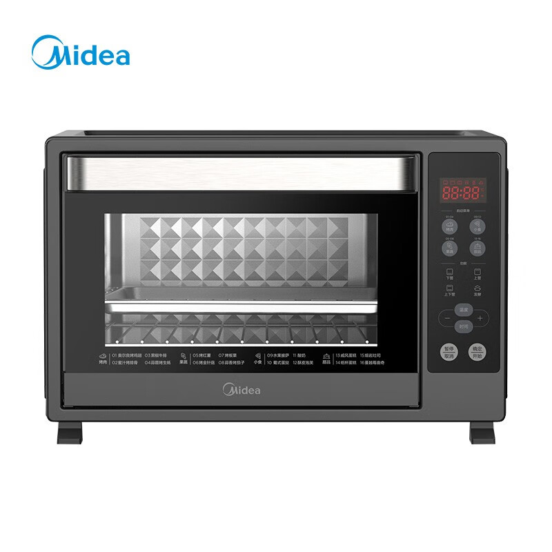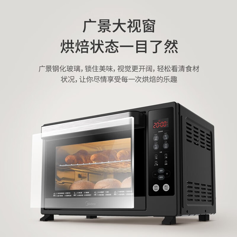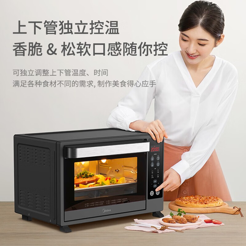 商品相册:美的(Midea)PT3507W 家用电子式烤箱 独立控温 35L大容量 多功能食谱 钻面立体电烤箱第