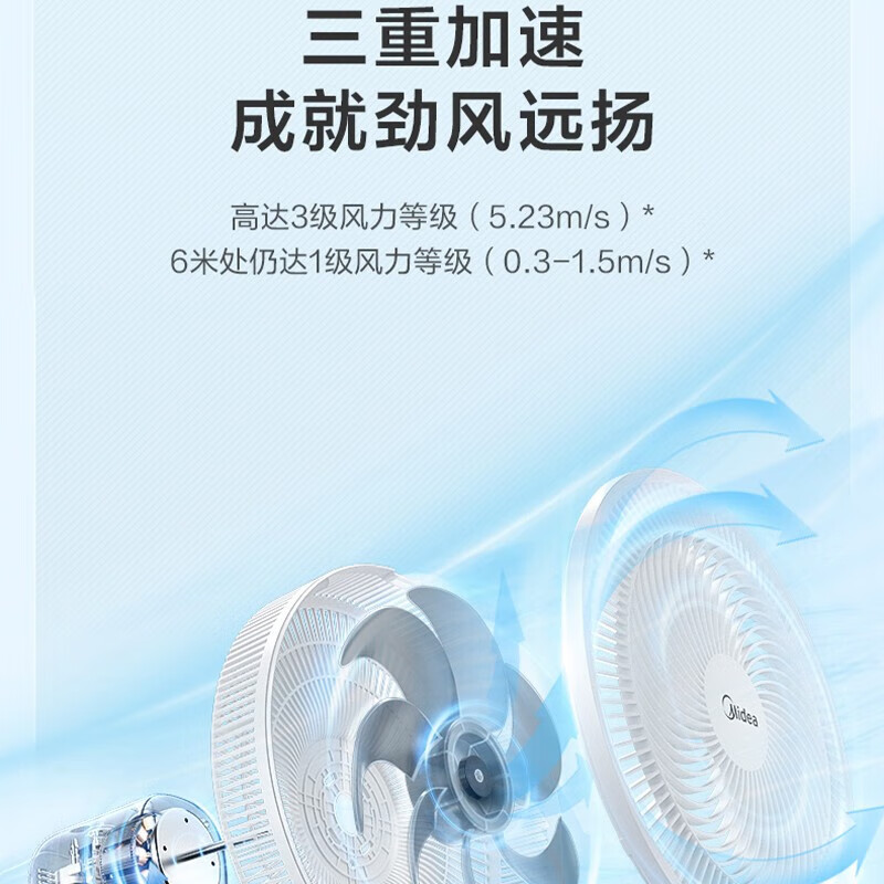 商品相册:美的(Midea) FSA30YB 家用电风扇 三档风速 广角送风三页柔和风升降摇头落地扇第