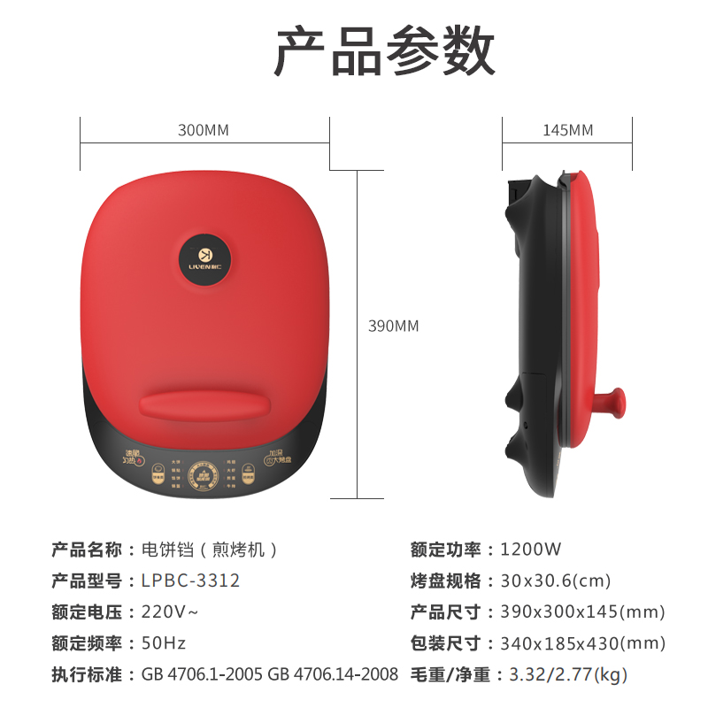 商品相册:利仁(Liven) LPBC-3312 电饼铛家用加深电饼锅双面加热电煎锅大口径煎饼锅深盘烙饼锅烙饼神器第