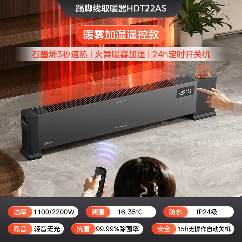 商品相册:美的(Midea) HDT22AS 石墨烯踢脚线取暖器家用能防水智能大面积第