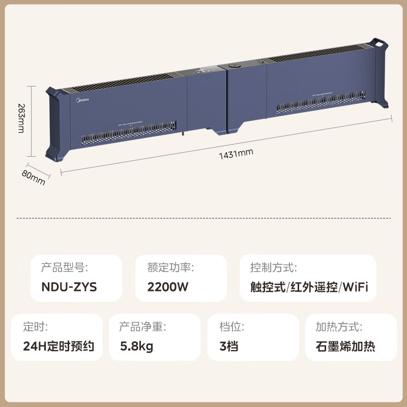 商品相册:美的(Midea) NDU-ZYS 石墨烯踢脚线取暖器 【升级APP操控+遥控器】第