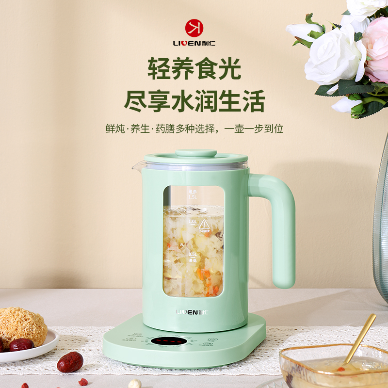 商品相册:利仁(Liven) LPYH-D1528 养生壶煮茶器煮茶壶智能电水壶烧水壶电热水壶迷你玻璃花茶壶黑茶第