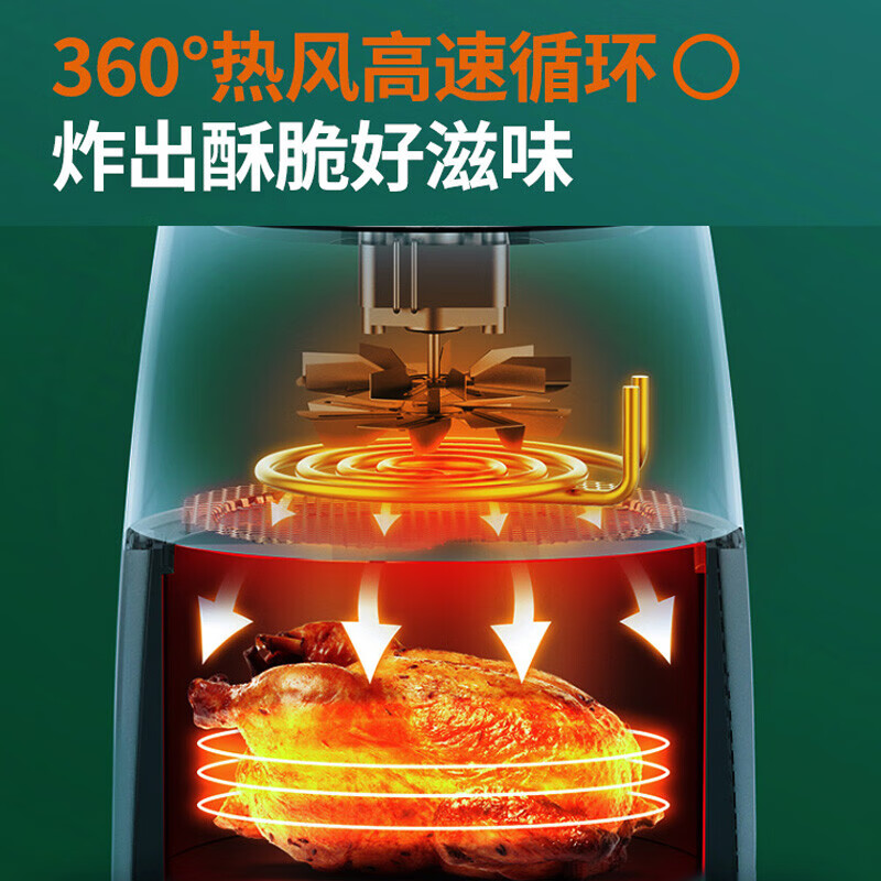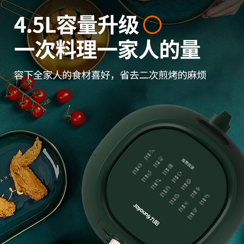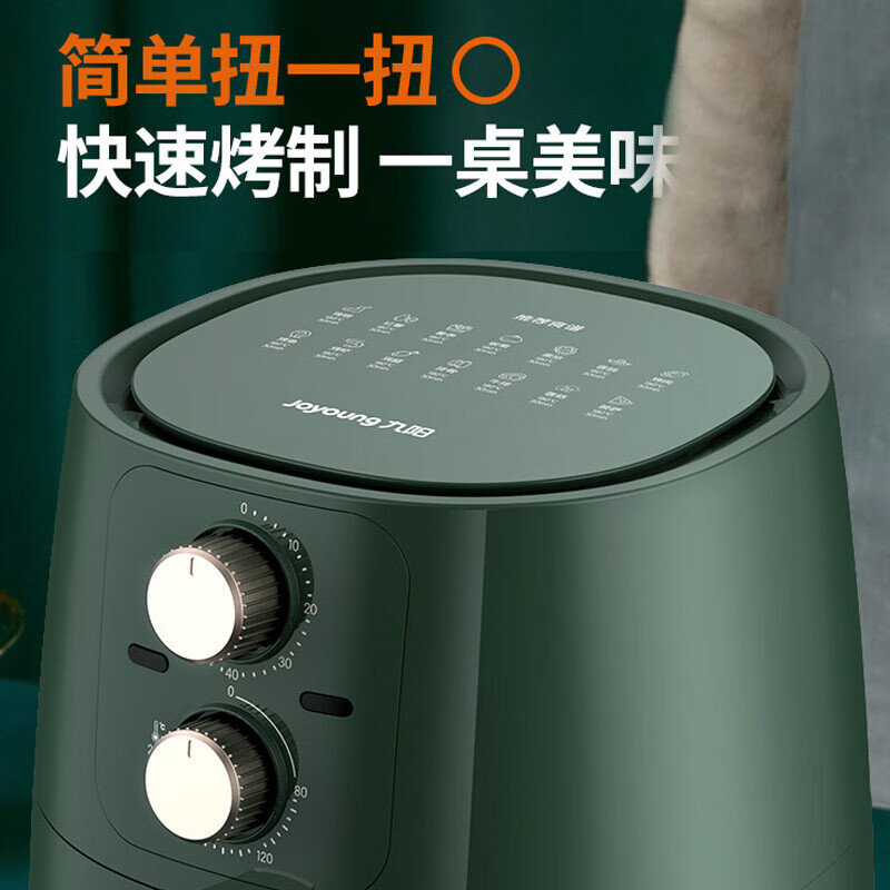 商品相册:九阳(Joyoung)KL35-J661绿色 空气炸锅大容量家用炸薯条机无油煎炸空气炸锅【4.5L 双旋钮】第