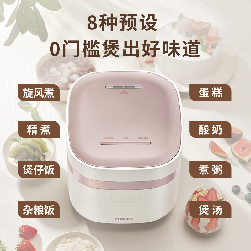 商品相册:飞利浦(PHILIPS)HD3072/20 多功能1.8L迷你电饭煲全隐藏式触控顶屏 24小时智能预约电饭煲 白色(推荐1-2人)第
