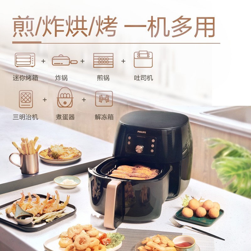商品相册:飞利浦(PHILIPS)HD9651/61 空气炸锅家用无油智能大容量多功能电炸锅双层空气循环加热 减90%油烟超大容量7.3L第
