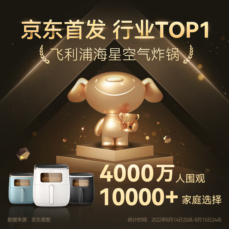 商品相册:飞利浦(PHILIPS)HD9257/80 海星空气炸锅 家用5.6L大容量多功能全自动【透明可视+不用翻面】双层锅体易清洗第