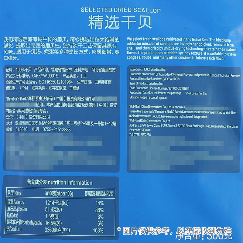 商品相册:【联合会员店常温区/Sam】山姆 精选干贝 300g第