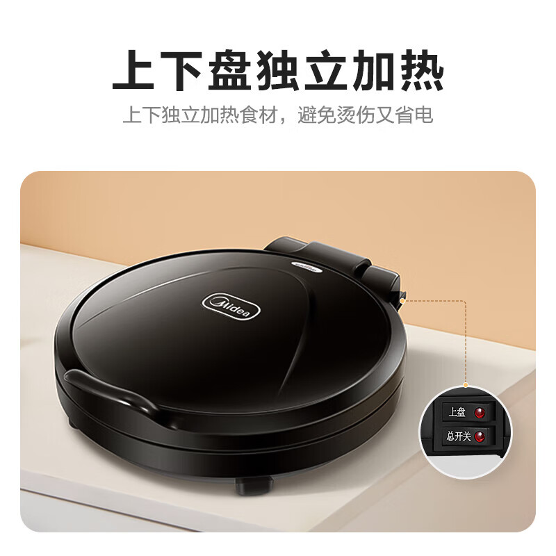商品相册:美的(Midea)煎烤机电饼铛早餐机 上下独立加热 JHN30F第