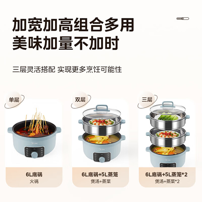 商品相册:美的(Midea)电蒸锅16L大容量上蒸下煮 60分钟定时多功能电煮锅ZGE3002第