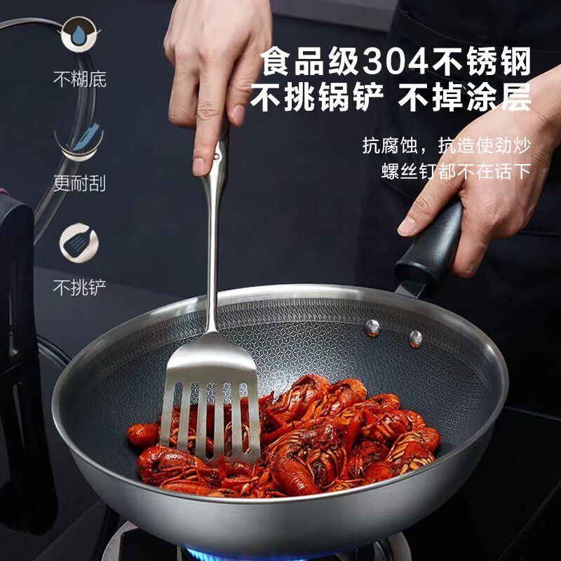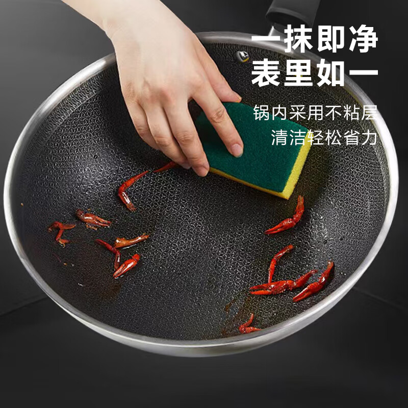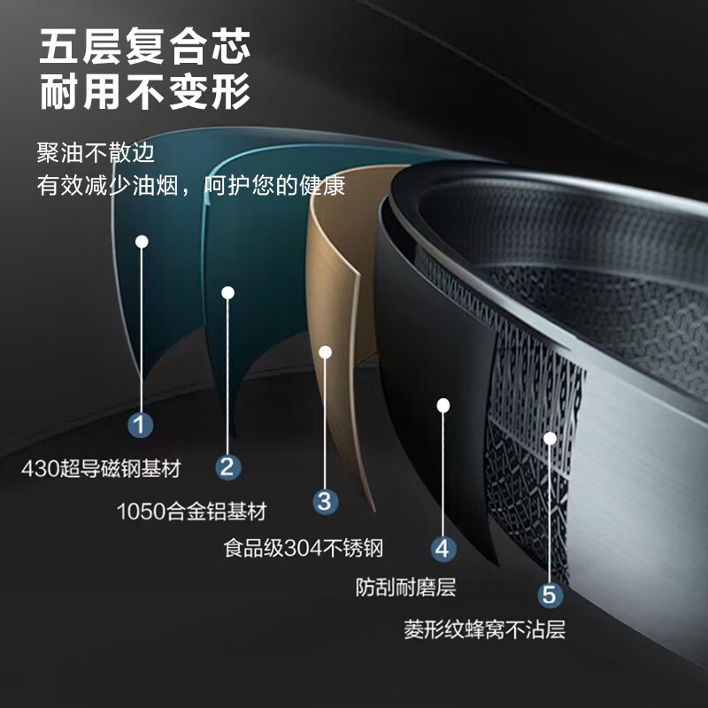 商品相册:美的(Midea)炒锅 32CM不沾防刮花 五层复合锅 晶刻蜂窝耐磨CJ32Wok504第