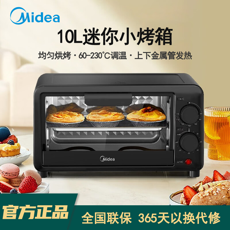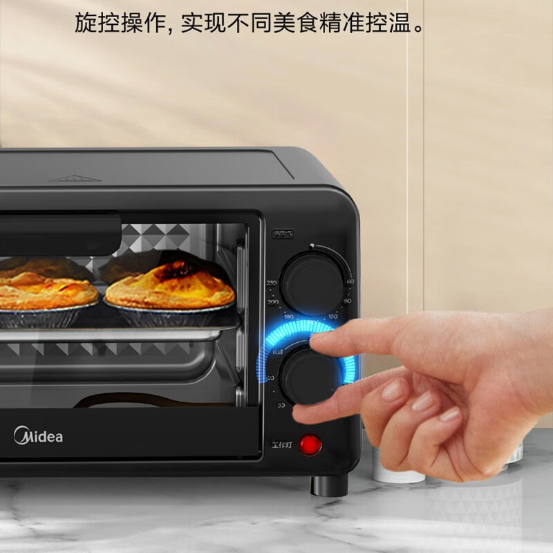 商品相册:美的(Midea)电烤箱 小烤箱10L 烘焙蛋糕 PT10B3耀石黑第