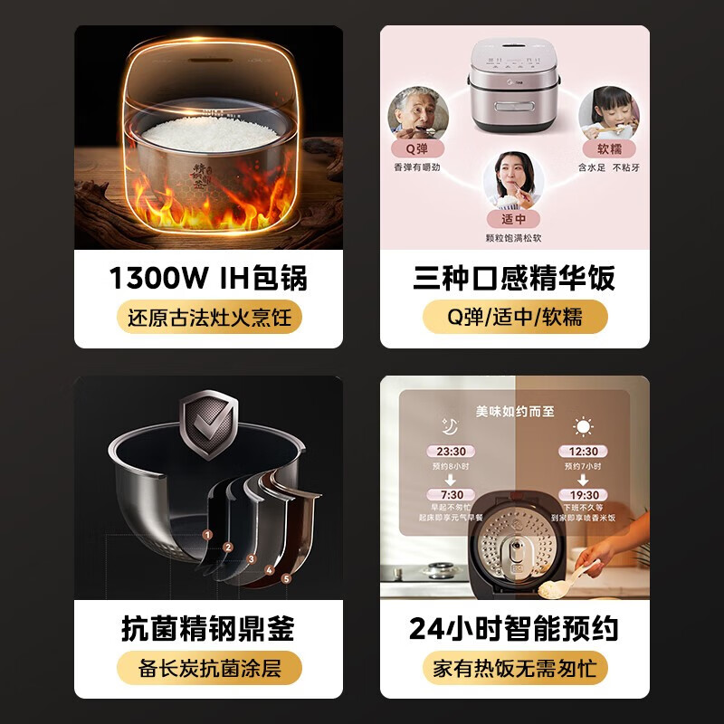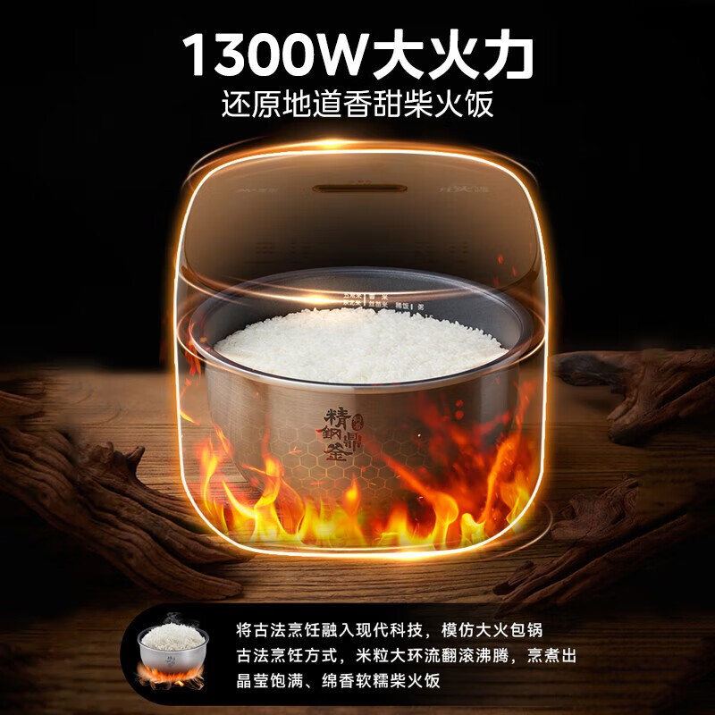 商品相册:美的(Midea)智能电饭煲 立体IH加热 4升精钢鼎釜 柴火饭 CFB4079H第