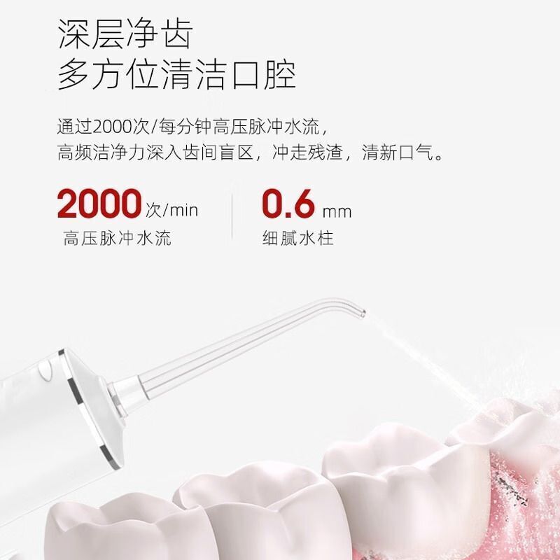 商品相册:拜尔便携充电式冲牙器 水牙线M6(配3个喷嘴)白色第