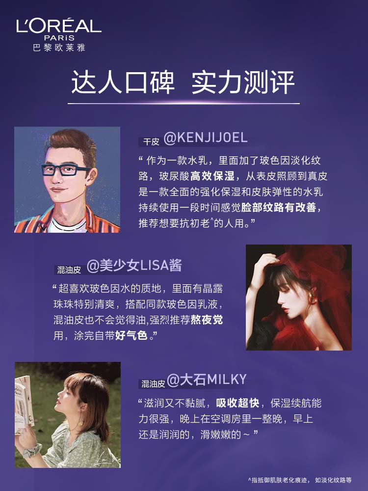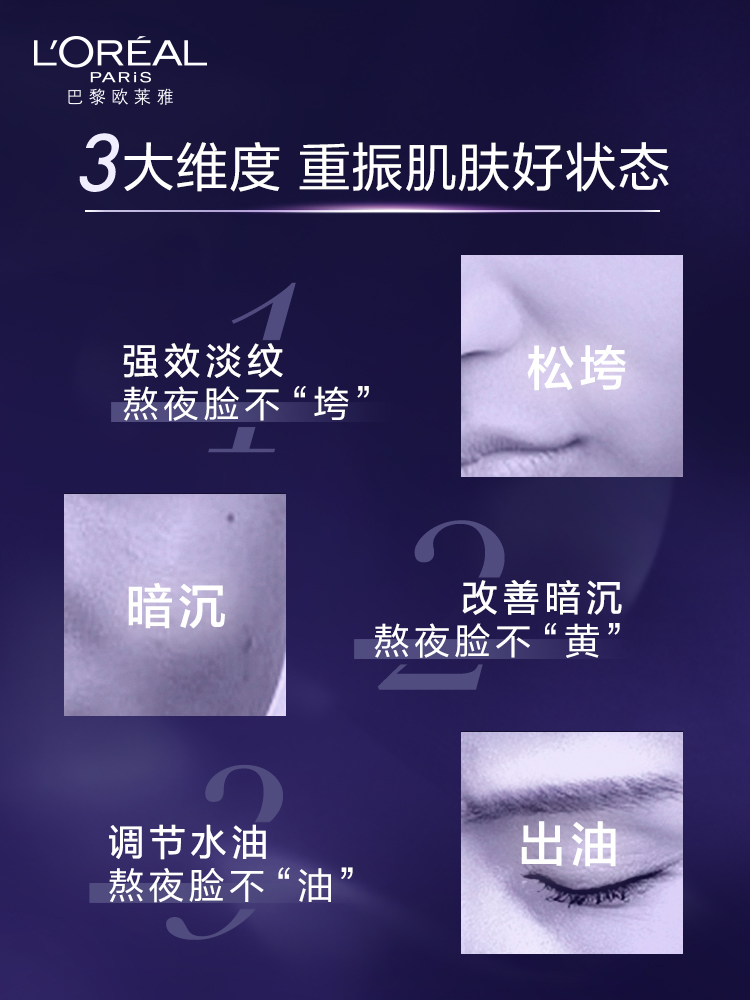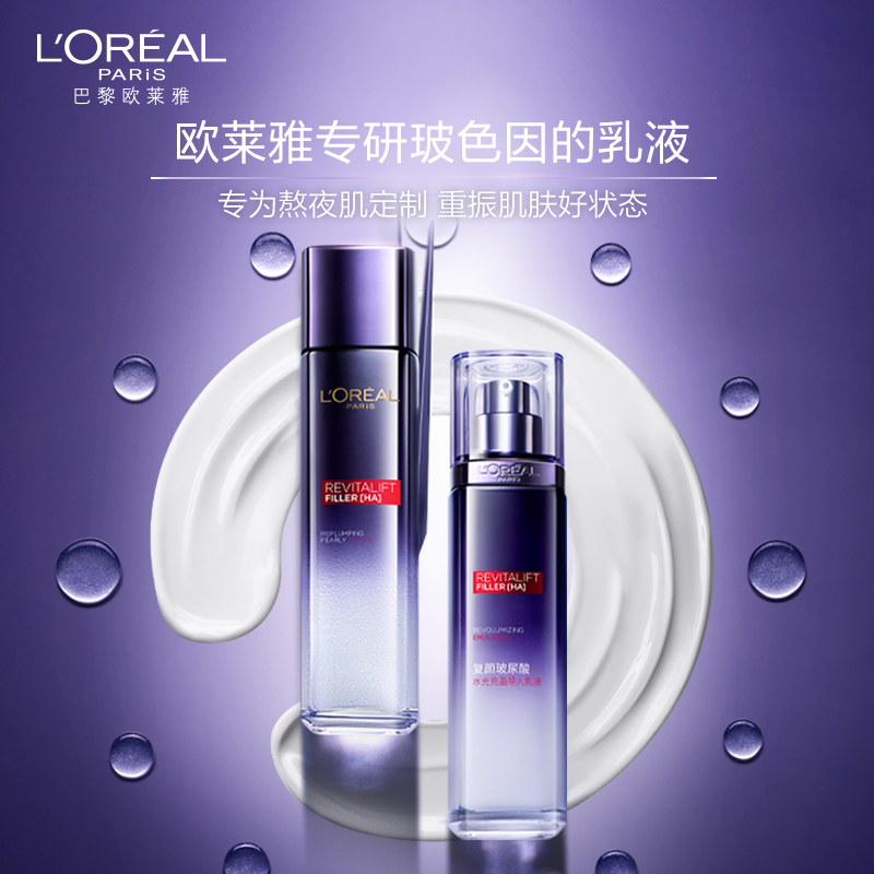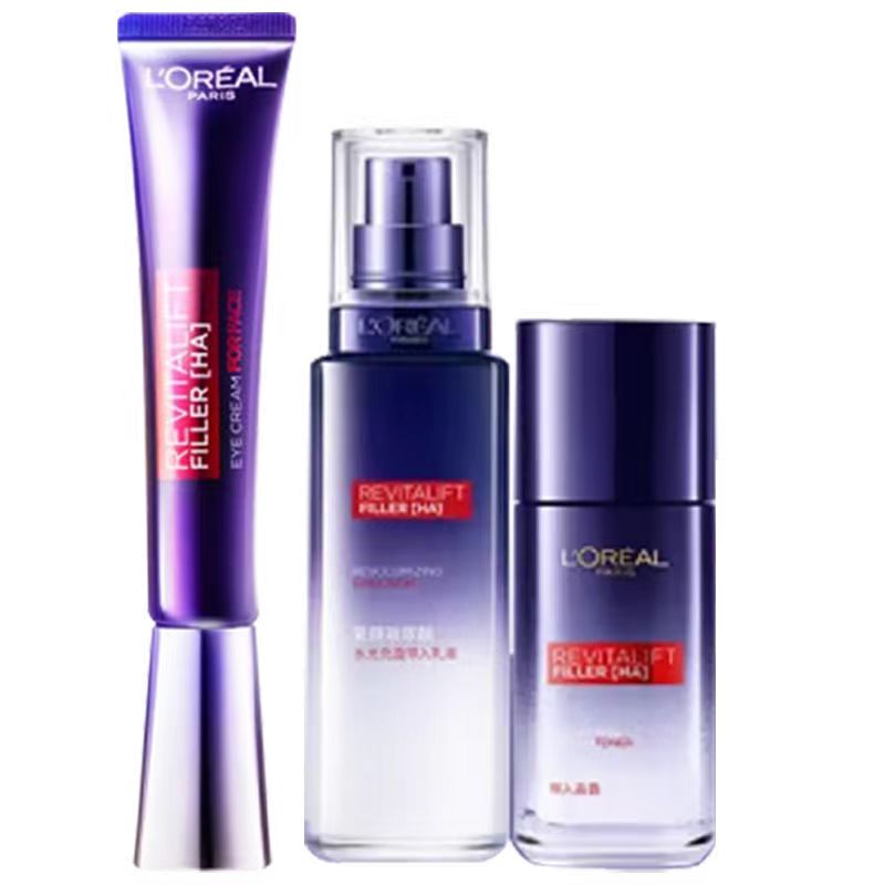商品相册:欧莱雅 复颜玻尿酸 水光充盈全脸淡纹眼霜套装CS(紫熨斗)第