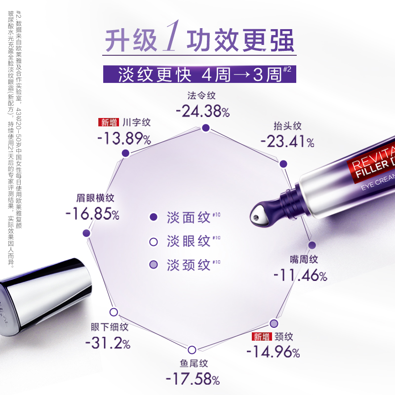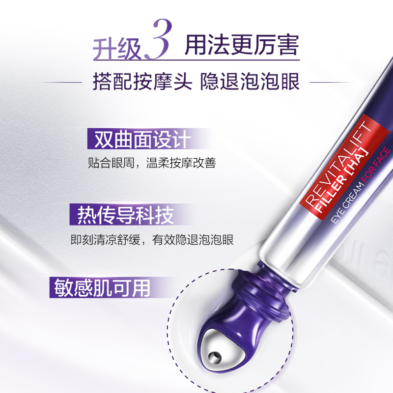 商品相册:欧莱雅 复颜玻尿酸水光充盈全脸淡纹眼霜30ml(紫熨斗)第