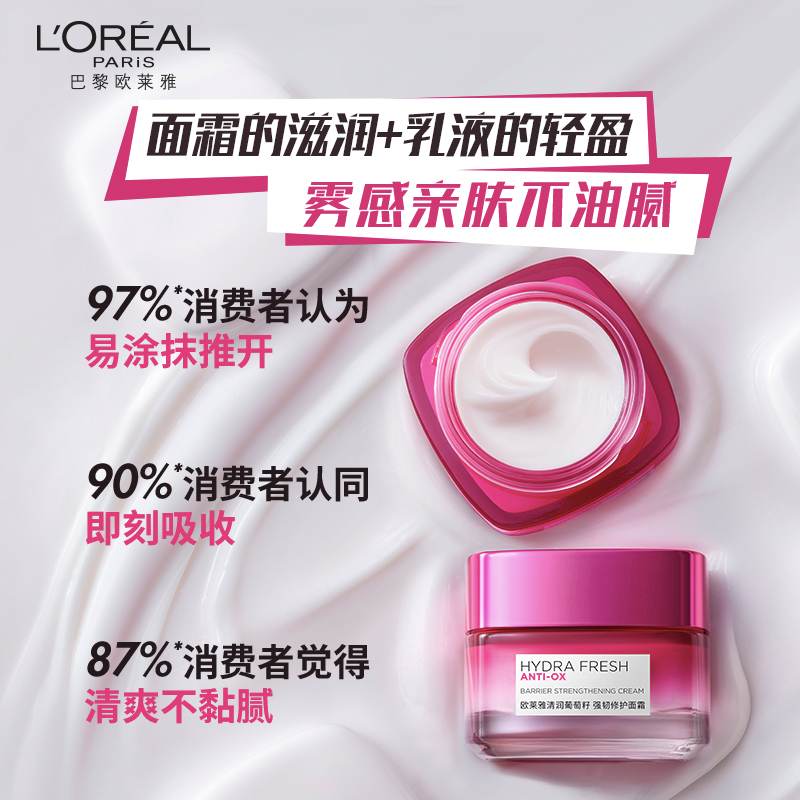 商品相册:欧莱雅 清润葡萄籽强韧修护面霜50ml第