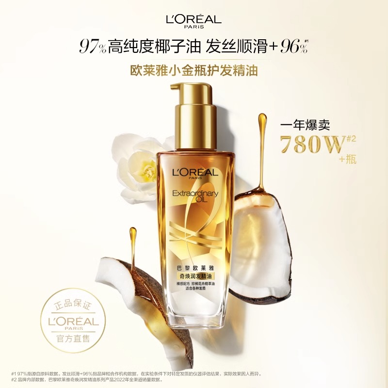 商品相册:欧莱雅 奇焕润发精油(针对任何发质) 100ml(小金瓶)第