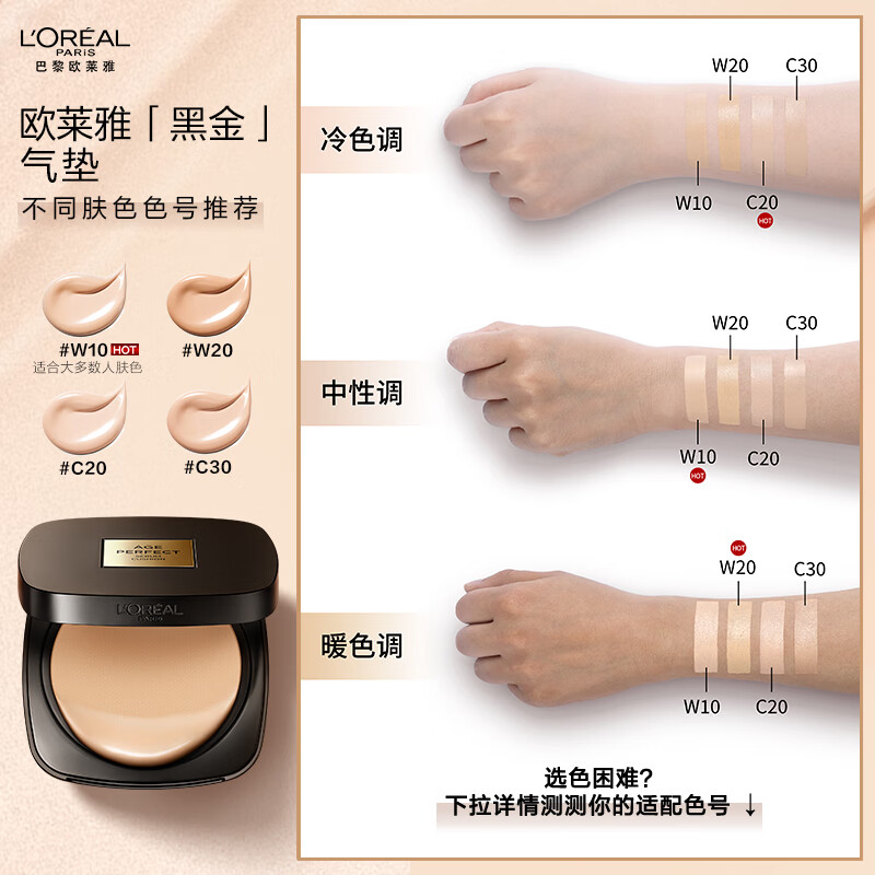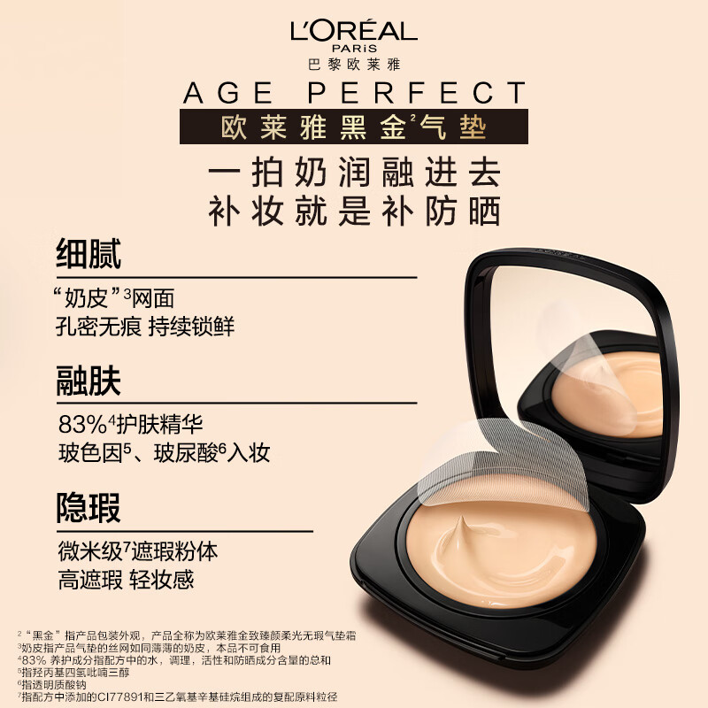 商品相册:欧莱雅 金致臻颜柔光无瑕气垫霜 W20 12g第