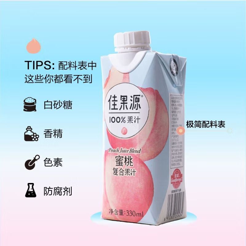 商品相册:佳果源佳果源100%蜜桃复合果汁330ml*12第