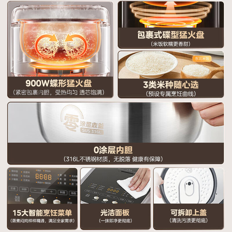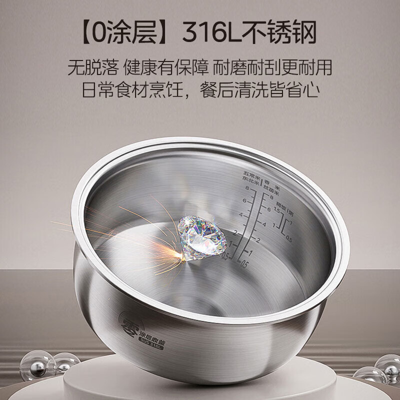商品相册:美的(Midea)电饭煲 0涂层电饭锅316L不锈钢内胆 MB-4E05S第