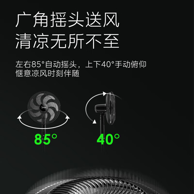 商品相册:美的(Midea)电风扇落地扇 7叶 7小时定时 遥控/触控 3档风 3级能效FSA40STH第